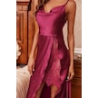 Merry See Özel Tasarım Degaje Yakalı Yırtmaçlı Dantelli Saten Uzun Gecelik Bordo