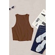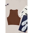 Merry See Tek Renk 1 Adet Kadın Kolsuz Örme Kumaş Bluz Crop Kahverengi 001