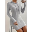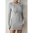 Merry See Uzun Kollu Kapşonlu Mini Elbise Gri