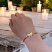 Merve İsmine Özel Kelebek Motifli 14 Ayar Altın Plakalı Turuncu Derili Hediye Bileklik-502isim Merve