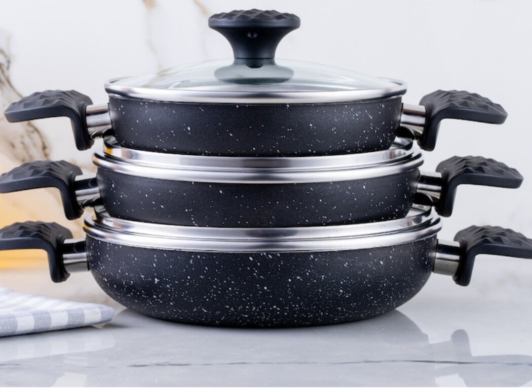 Meşeler Granit Omlet Sahan Seti Gri 18x20x22 CM