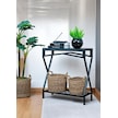 Metal Dresuar Siyah Ahşap Raflı Stand Çok Amaçlı Salon & Hol Rafı Siyah