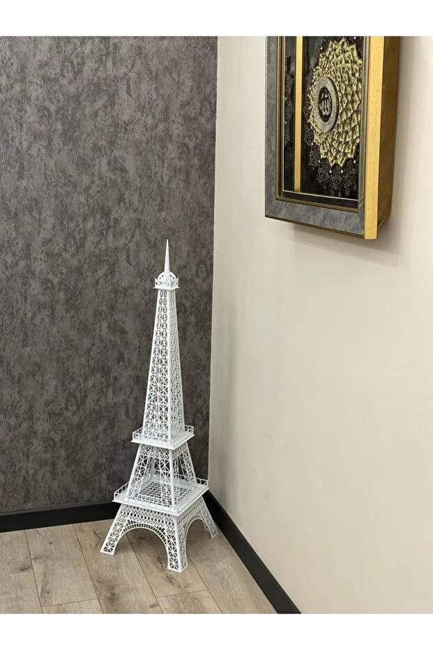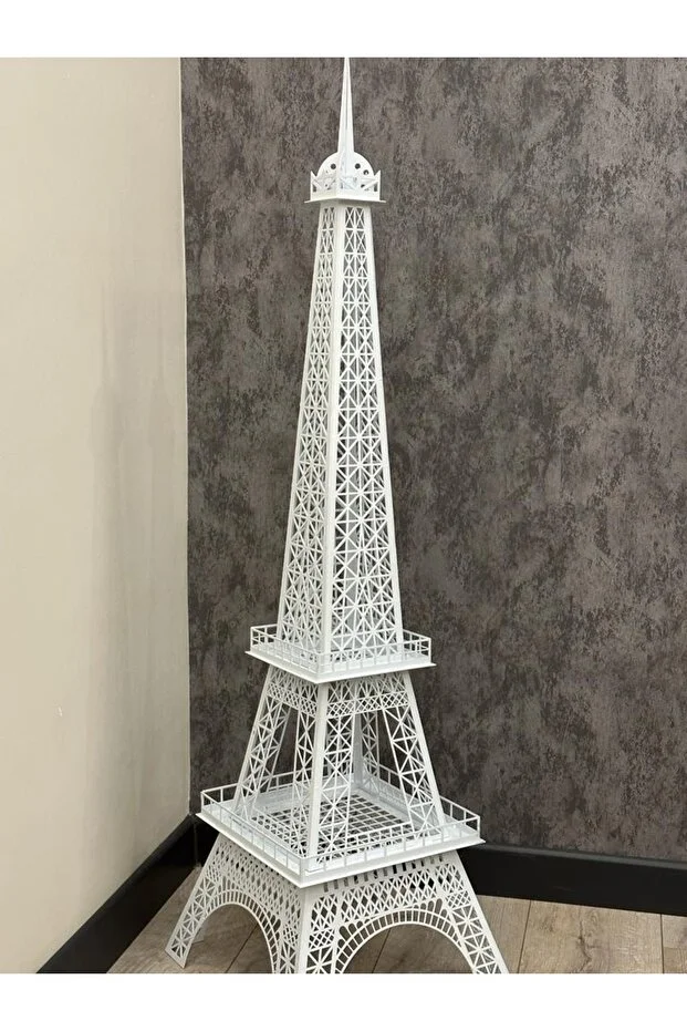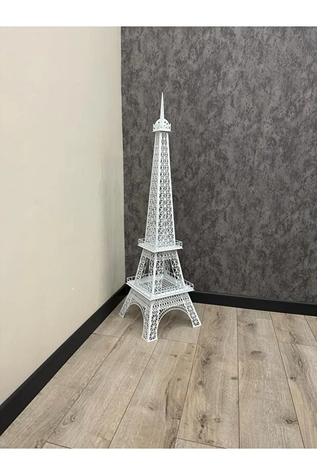 Metal Eyfel Kulesi Cnc Kesim 120 Cm Beyaz