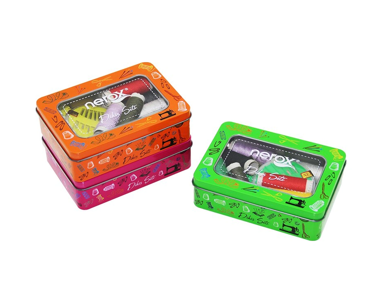 Metal Kutu Dikiş Seti İplik - Mezura - Tekstil Makası - İğne - Yü Diğer