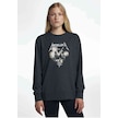 Kadın Gri Oversize Sweatshirt Baskılı Dudak Desenli, Sokak Stili, Rahat Kesim Gri