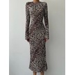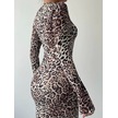 Kadın Eteği Ve Kolu Büzgülü Leopar Desenli Elbise Leopar
