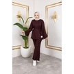 Tesettür İkili Takım Uzun Tunik Bol Paça Pantolon 4006-kahve Kahverengi