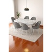 Mia Serisi Açılabilir Mutfak Masası Takımı Beyaz Mermer Desen Masa 6 Sandalye, Yemek Masası Gri