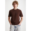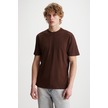 Mıchel Erkek Slim Fit Dar Kesim %100 Organik Pamuklu Yana Kayan Dikişli Basic Örme Acı Kahve T-shir