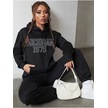 Michigan 1975 Eşofman Takımı Sweatshirt Jogger - Siyah Baskılı Oversize Şardonlu Kapüşonlu Siyah