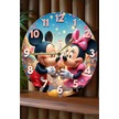 Mickey & Minnie Temalı Renkli Mdf Duvar Saati 3d Görünümlü, Sessiz Mekanizmalı, 2d Hd Baskı Sdw242 Renkli