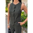 Midi Şortlu Ve Yelekli Viscon Takım 10167 Çağla