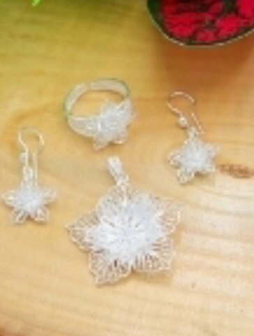 Midyat Nurtaş Gümüş Çiçek Model Kadın 925 Ayar Gümüş Telkari Üçlü Set 201022186