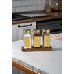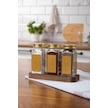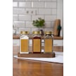 Mienda Home 3'lü Ahşap Standlı Cam Baharatlık Seti Gold Kapaklı Etiketli Baharatlık Takımı Gold - Şeffaf
