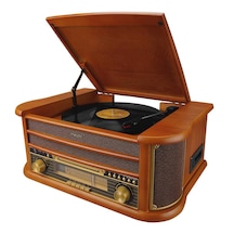 Mikado MN-P325 Dönence Ahşap Nostalji Pikap USB/Kaset/CD/Radyo/Bluetooth Plak Çalar Kumandalı