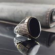 Mikro Taşlı Siyah Oniks Gümüş Erkek Yüzük Gyzgmsogumu