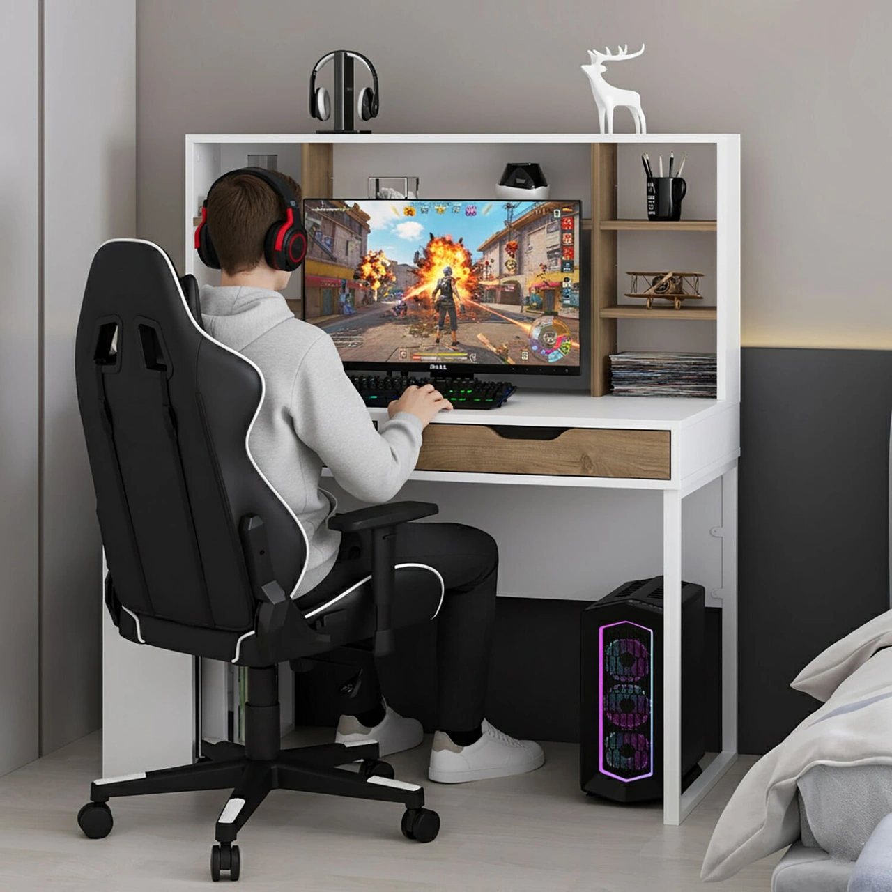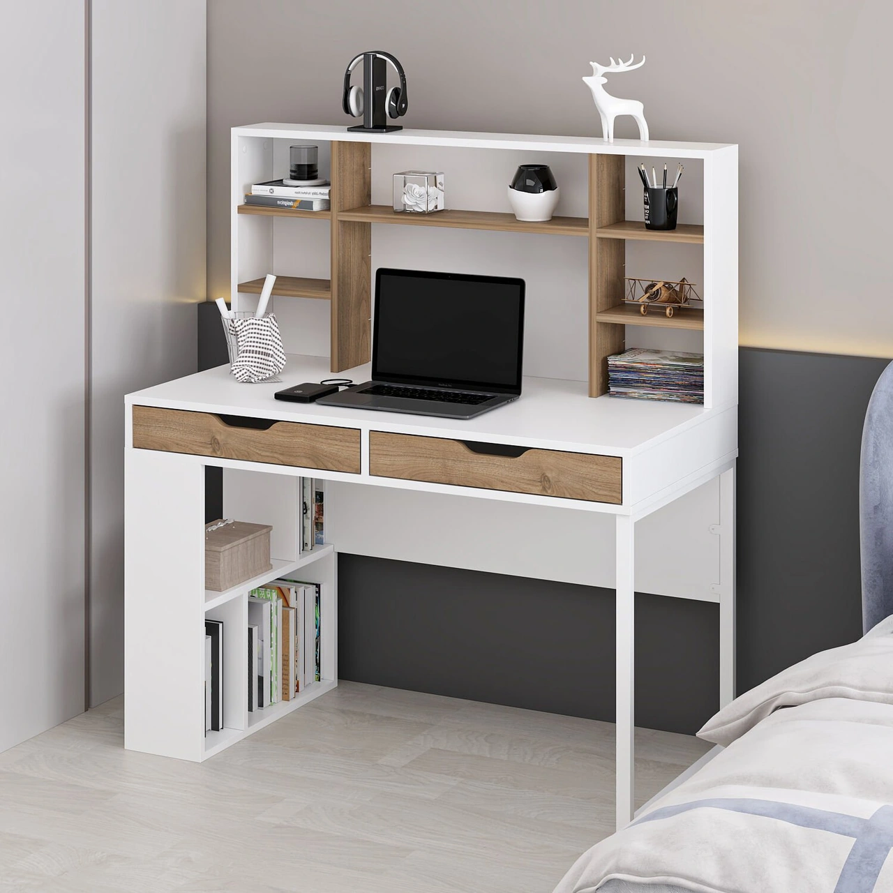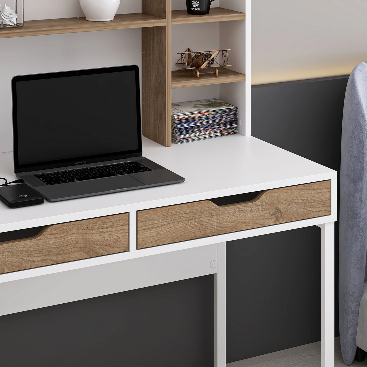 Melsa Çalışma Masası Dolaplı Ve Kitaplıklı Bilgisayar Masası, Çocuk Çalışma Masası Beyaz Beyaz