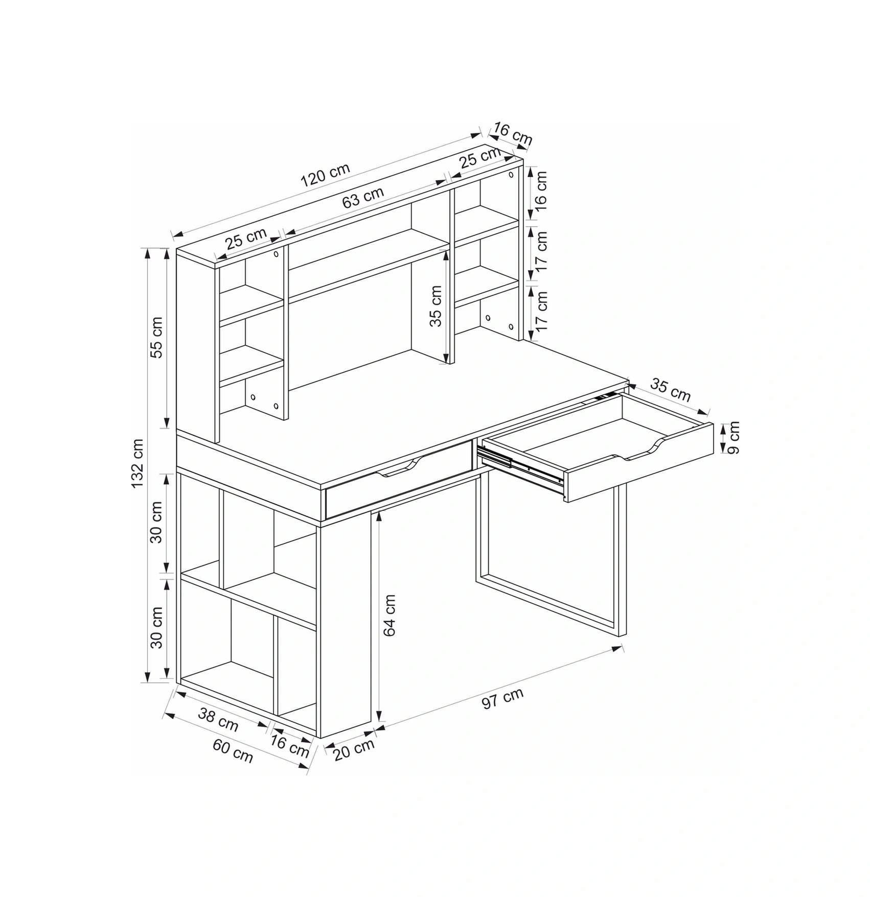 Enda Home Pillar Kütüphaneli Geniş Çalışma Masası 100x56 Cm Çam - Antrasit Çam - Gri