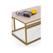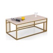 Milano Lüks Orta Sehpa Metal Ayaklı Traverten Üst Tablalı Dikdö Altın