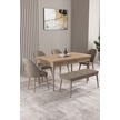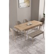 Milas Meşe Desen 80x132 Mdf Açılabilir Yemek Masası Takımı 4 Sandalye, 1 Bench Cappucino