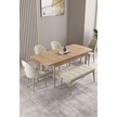 Milas Meşe Desen 80x132 Mdf Açılabilir Yemek Masası Takımı 4 Sandalye, 1 Bench Krem