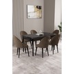 Milas Siyah Mermer Desen 80x132 Mdf Açılabilir Mutfak Masası Takımı 6 Adet Sandalye Kahverengi