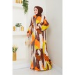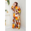 Milaz Boydan Düğmeli Dokuma Viskon Elbise 1501 - Turuncu Turuncu