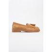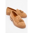 Milina Toprak Süet Püsküllü Hakiki Deri Kadın Loafer Ayakkabı Toprak