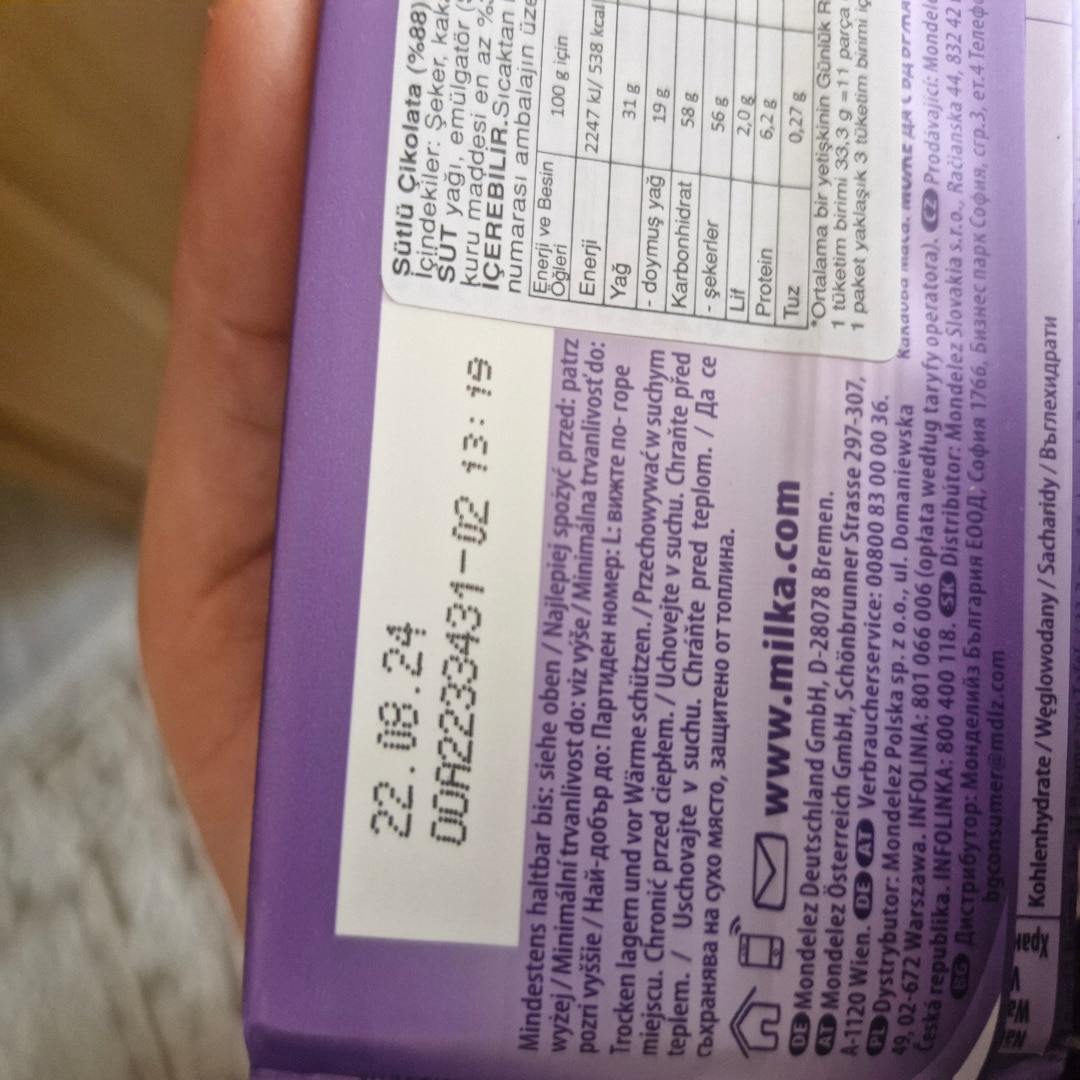 daha öncede aldım milka kalitesi belli zaten tadı efsane son tüketim tarihi yakın ilk aldığım ağustostu bu temmuz 07.2024 skt yakın olduğunu bilerek aldım zaten o zaman kalmıyor 🙃 hızlı kargolandı