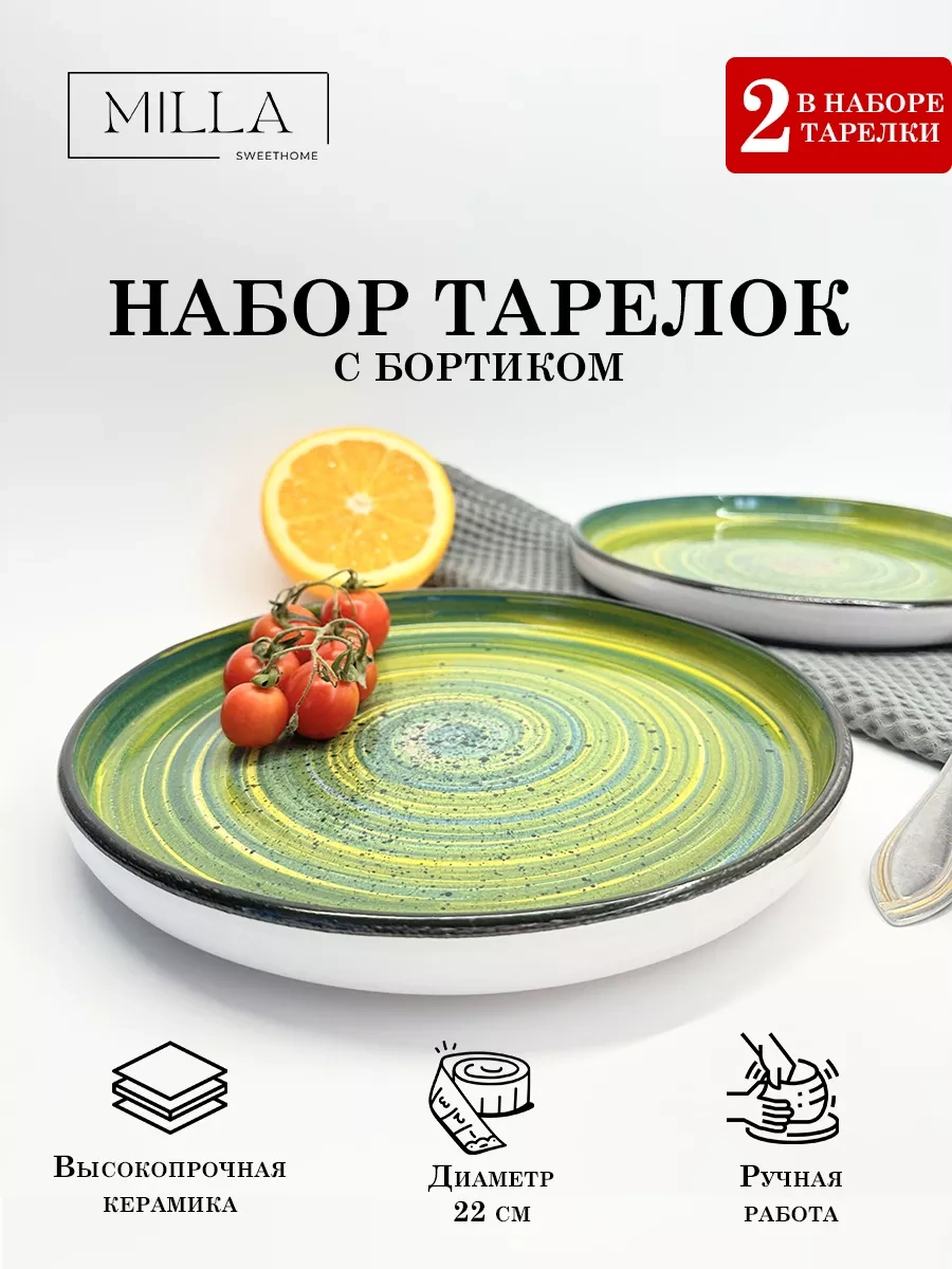 Milla Sweethome 2 Adet Kenarlı 22 Cm Seramik Düz Tabak Seti 187413620 Yeşil