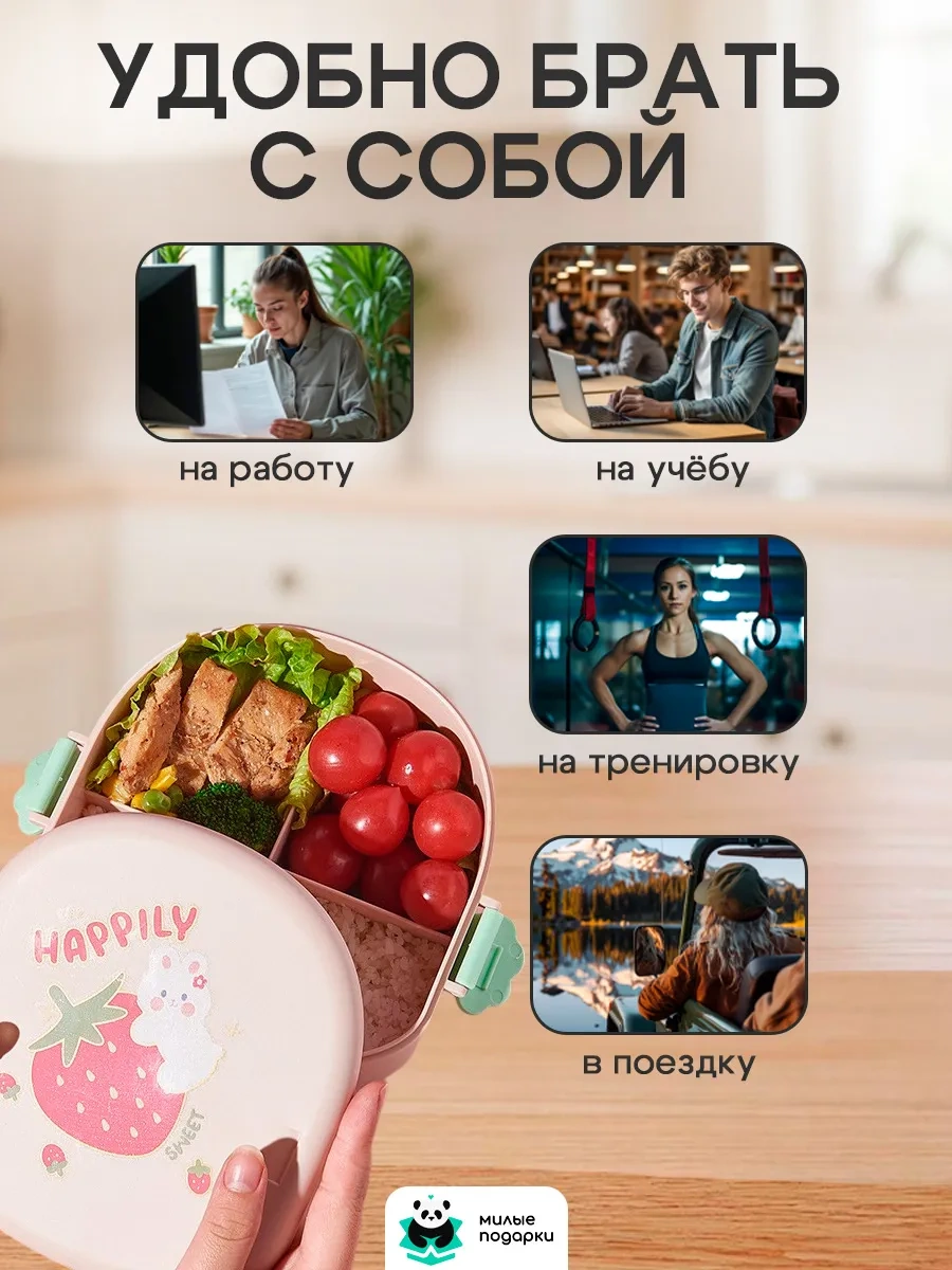 Milye Podarki Bölmeli Çocuk Öğle Yemeği Kutusu Ve Yemek Takımı 178068304 Pembe