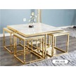 Mim Rambla - Gold Kare 4+1 Pizza Orta Sehpa Gold - Beyaz Mermer