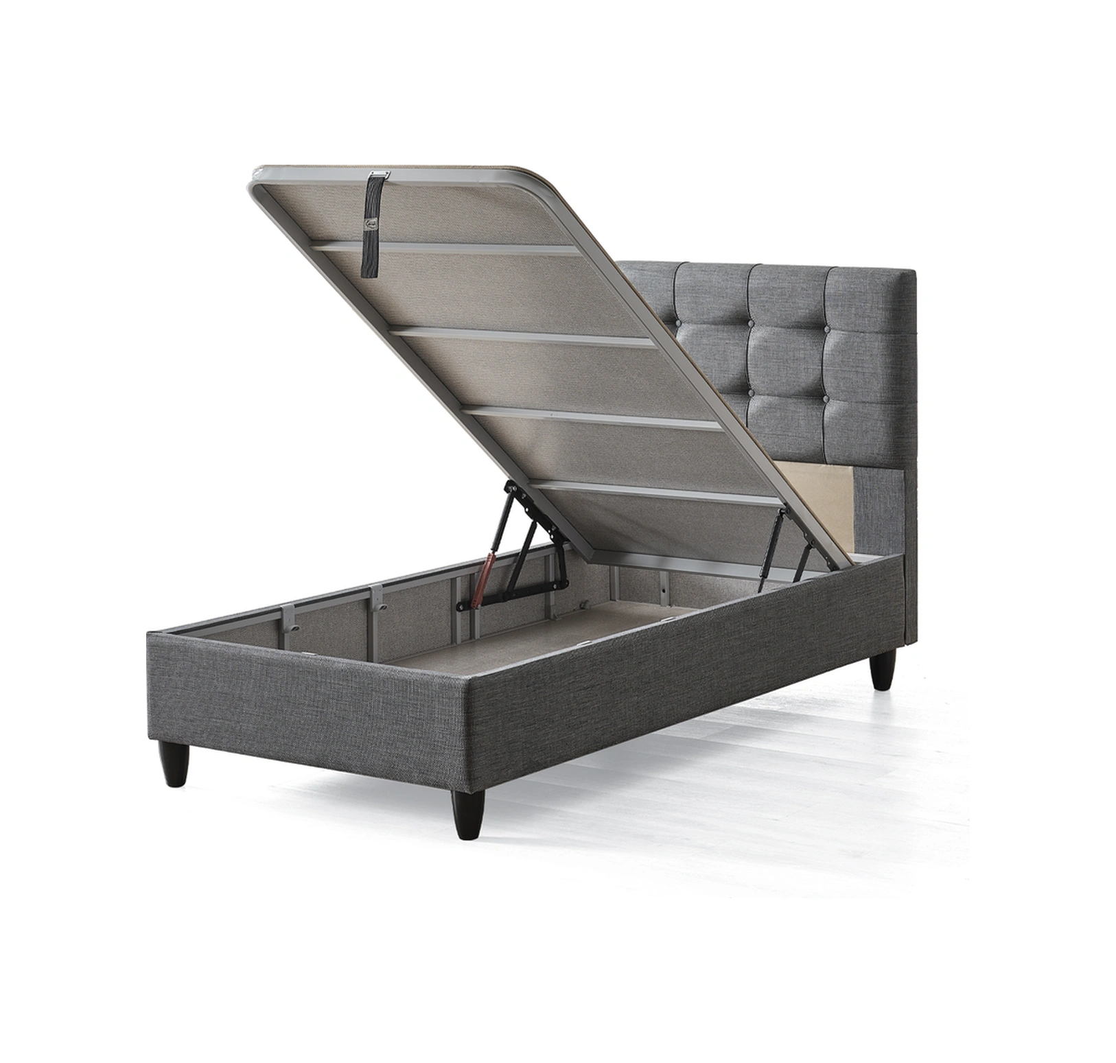 Setaymobilya Baza, Tetra Antrasit Tek Kişilik Baza + Başlık + Deluxe Yatak
