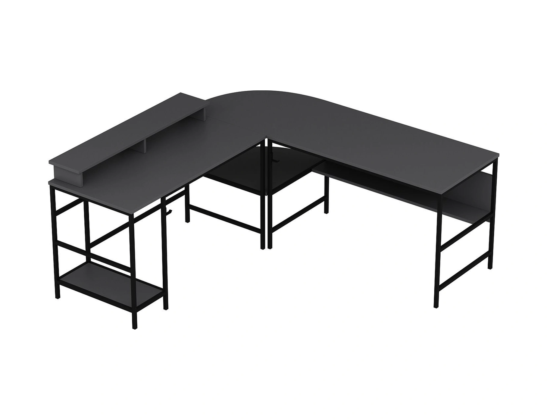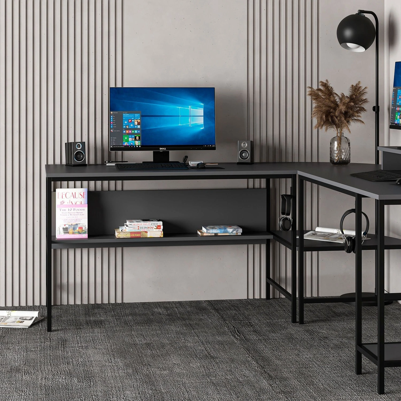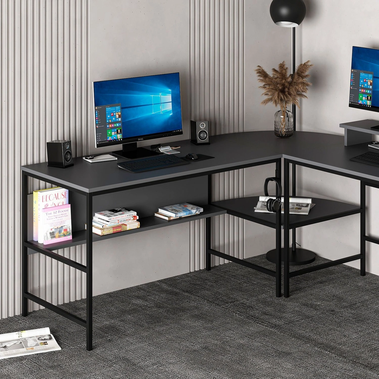 Minar Greta Raflı L Köşe Çalışma Masası - Antrasit Siyah