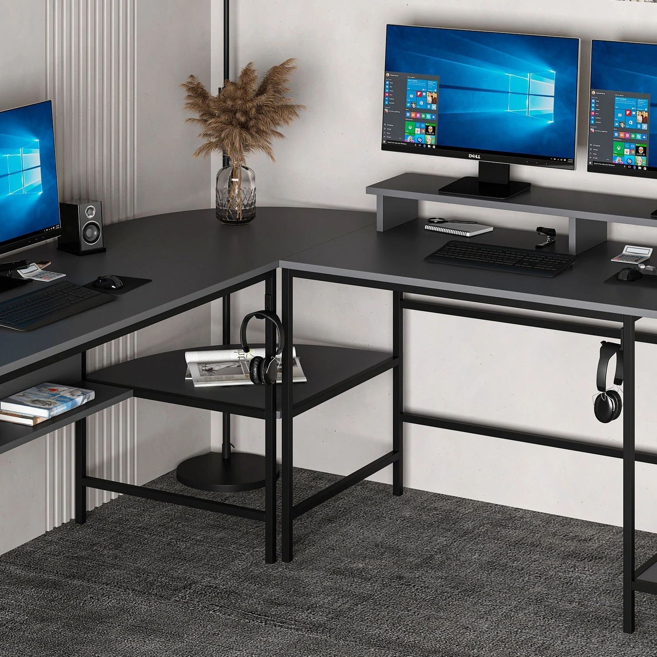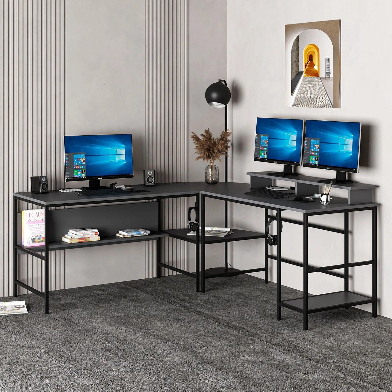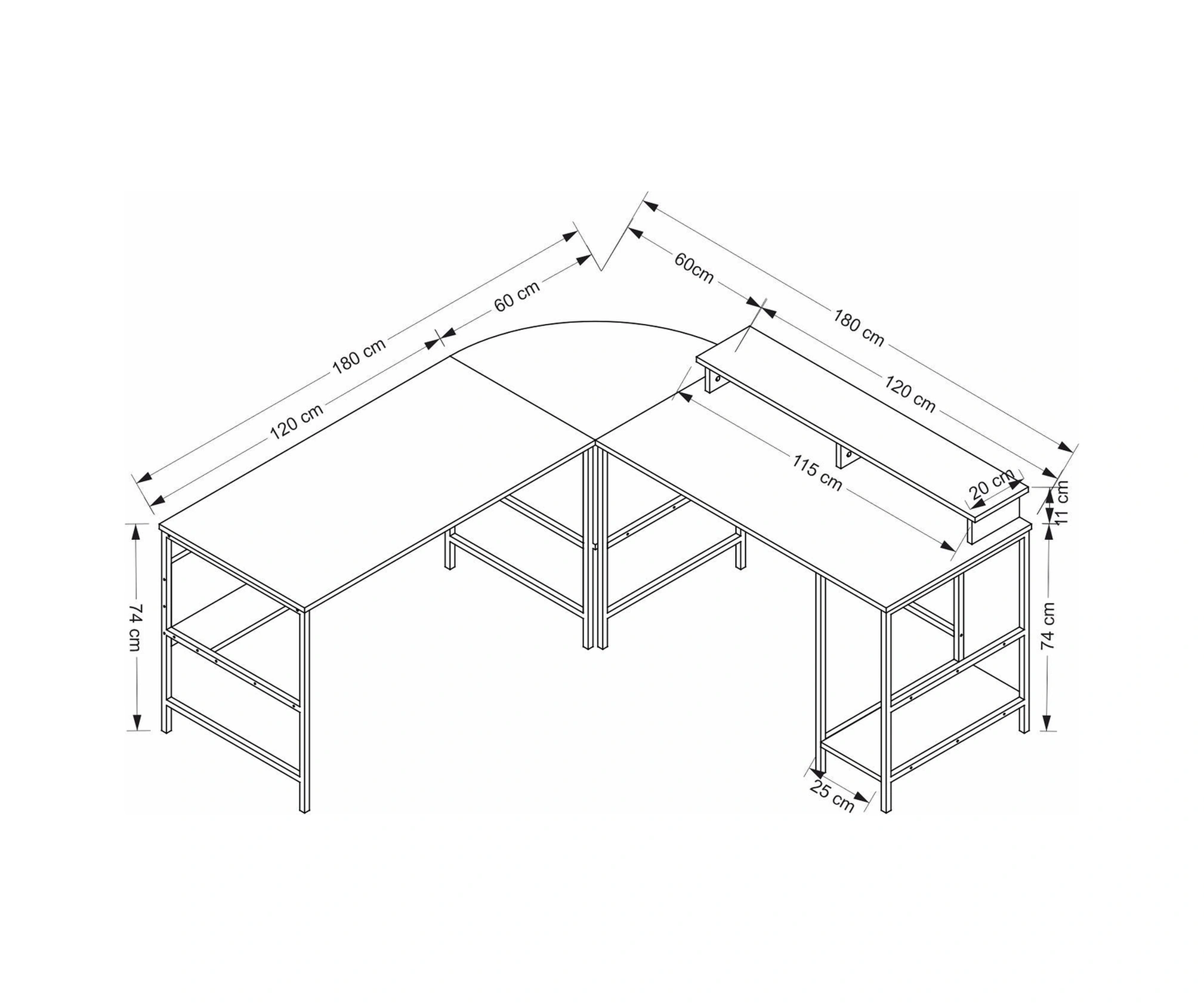 Minar Greta Raflı L Köşe Çalışma Masası - Antrasit Siyah