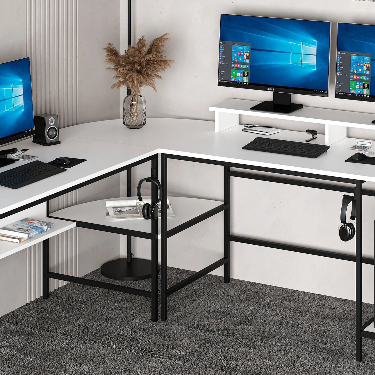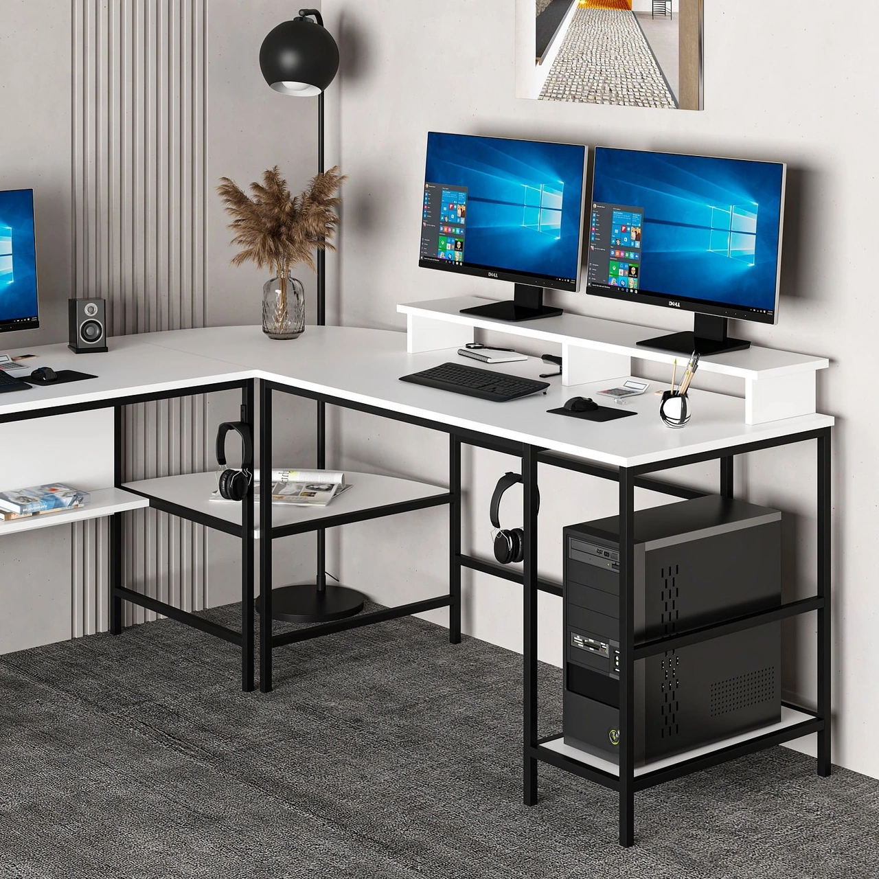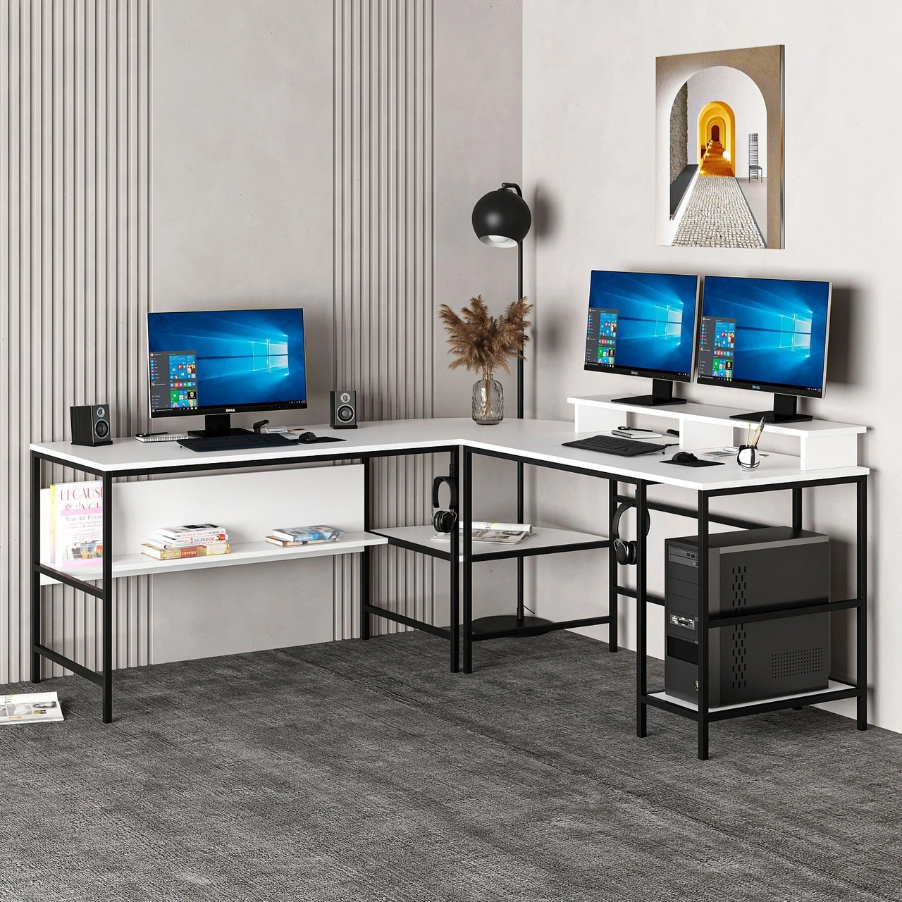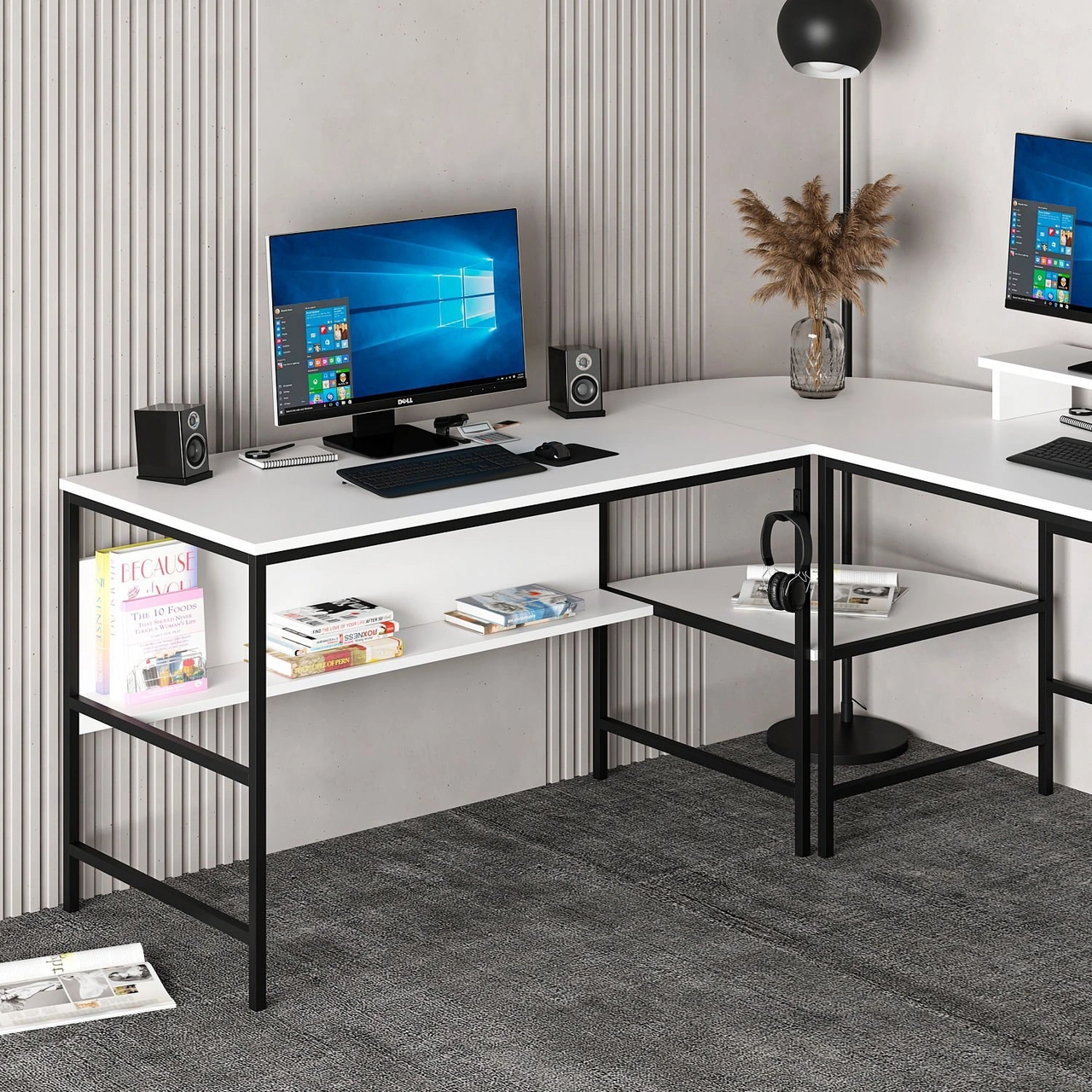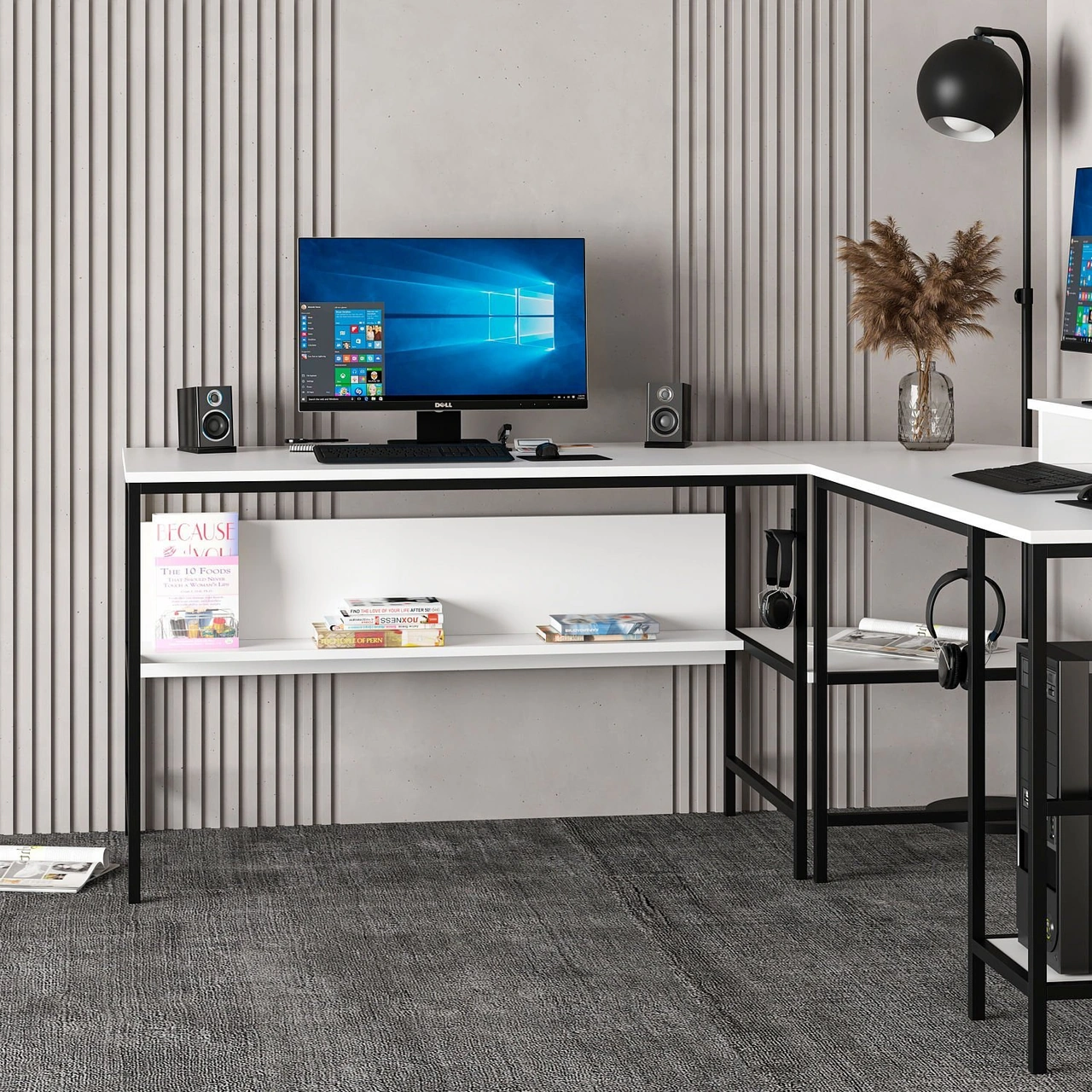 Minar Greta Raflı L Köşe Çalışma Masası - Beyaz Beyaz
