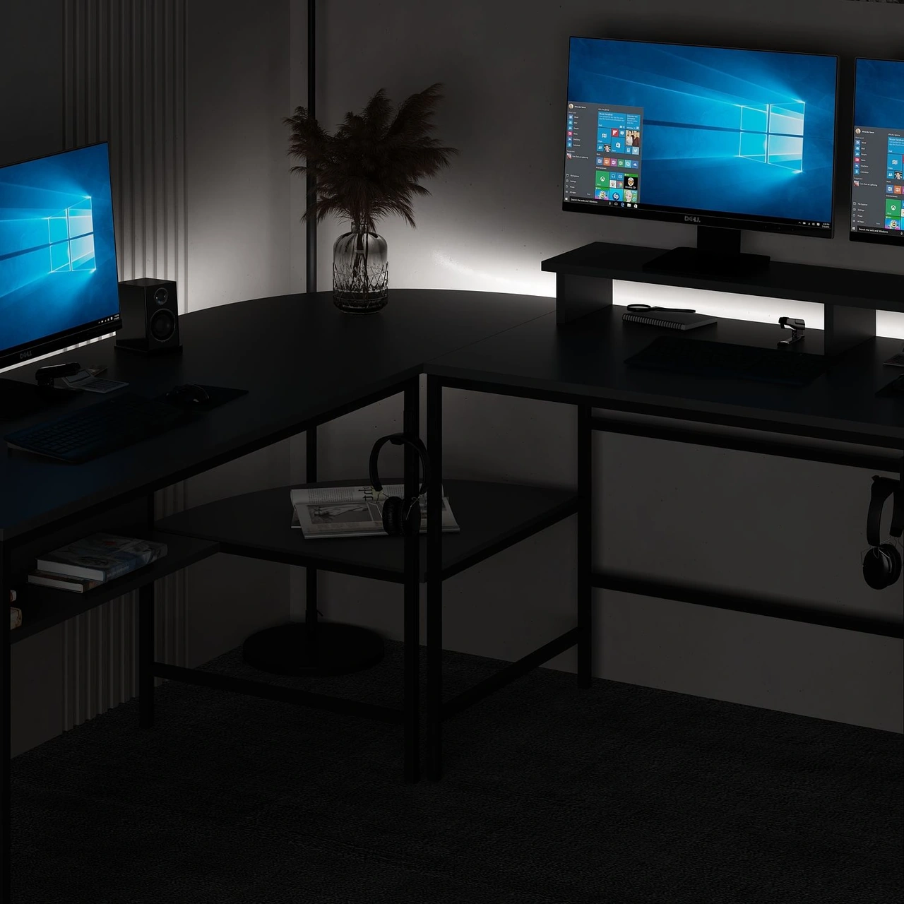 Minar Greta Rgb Led Işıklı L Köşe Çalışma Masası - Antrasit Beyaz