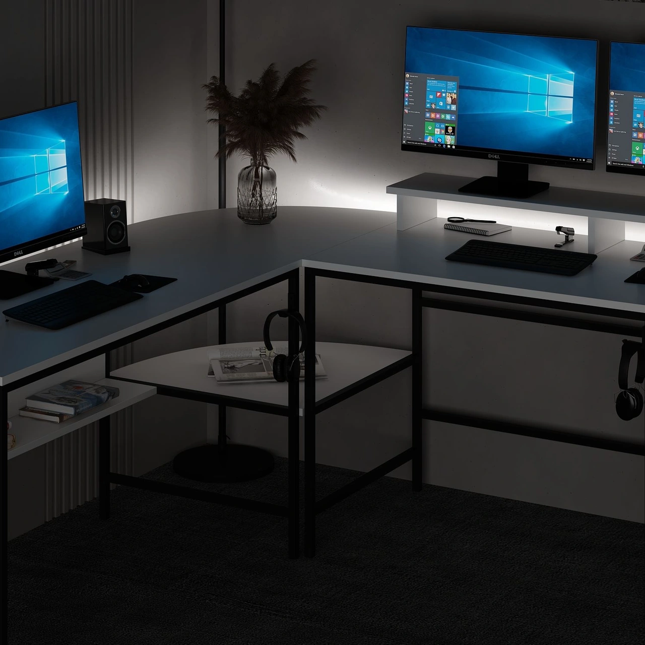 Minar Greta Rgb Led Işıklı L Köşe Çalışma Masası - Beyaz Beyaz