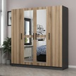 Minar Kale 4 Kapaklı 2 Aynalı 2 Çekmeceli Dolap Antrasit Dore 210cm Çok Renkli