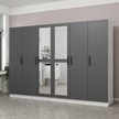 Minar Kale 6 Kapaklı 2 Aynalı 4 Çekmeceli Dolap Beyaz Antrasit 210cm Çok Renkli