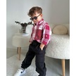 Minaz Baby Kareli Gömlek Pantolon Takım Kırmızı - Siyah