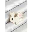 Mineli Çiçek Detaylı Krem Tavşan Figürlü Gold Renk Kadın Broş - Tj-br452 Çok Renkli