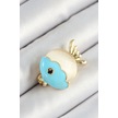 Mineli Turkuaz Ve Krem Balık Figürlü Gold Renk Kadın Broş