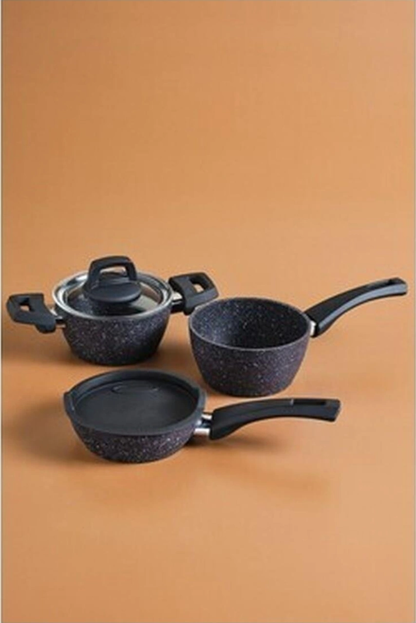 Mini 5 Parça Granit Tencere Ve Tava Seti, Gri, Dayanıklı Ve Şık Mutfak Gereçleri Bakır - Siyah