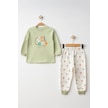 Mini Damla Pijama Takımı Penye Cool Camp Baskılı Yeşil-11383 Yeşil