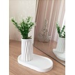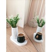 Mini Desenli Beton Saksı Tekli Ve Oval Tabak - Yapay Çiçek Hediyeli - Beyaz