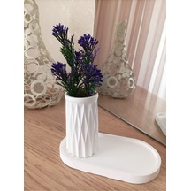 Mini Desenli Beton Saksı Tekli Ve Oval Tabak - Yapay Çiçek Hediyeli - Mor Tomurcuk