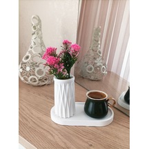 Mini Desenli Beton Saksı Tekli Ve Oval Tabak - Yapay Çiçek Hediyeli - Pembe