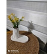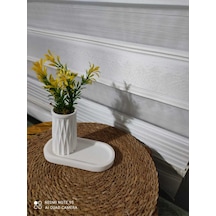 Mini Desenli Beton Saksı Tekli Ve Oval Tabak - Yapay Çiçek Hediyeli - Sarı