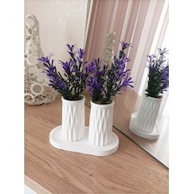 Mini Desenli İkili Beton Saksı Ve Oval Tabak - Yapay Çiçek Hediyeli - Mor
